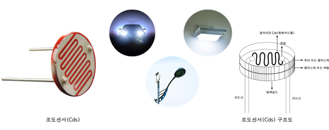CdS센서는 작고 저렴하기 때문에 가장 보편적으로 사용되고 있는데 어두워지면 자동으로 켜지는 가로등, 자동차의 헤드라이트, 밝기에 따라 변하는 핸드폰 화면 액정 등 실생활에서도 쉽게 찾아 볼 수 있다.