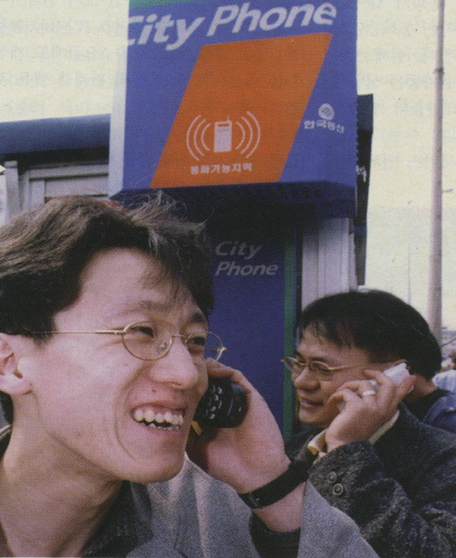한편, CT-2 사업자에 선정된 업체들은 본격적 사업 준비에 한창이었다. 무선전화기를 발전시킨 형태의 CT-2는 도심 인구밀집 지역에서 소형 저출력 단말기를 이용, 발신 전용으로 통화를 할 수 있는 서비스로 기지국 당 최대 6명이 접속해 사용할 수 있었다. 기지국 범위는 도심 30~50m, 외곽 지역 150~200m로 달리는 차안에서나 이동 중 사용하기는 어려웠다. 흔히 KT에서 97년 3월부터 서비스를 시작했던 ‘시티폰’으로 기억된다.