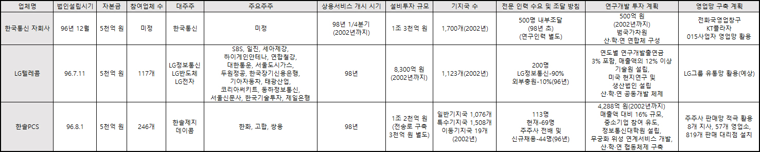 당시 최대 유망 사업으로 꼽히며 재계 판도변화까지 불러올 것으로 전망됐던 PCS, 즉 1.8GHz 대역 주파수를 사용한 이동통신 사업권은 각 컨소시엄에 참여한 대기업들 간의 치열한 경쟁을 불러왔다. 사업권은 결국 LG텔레콤과 한솔PCS에게 돌아갔으며, 여기에 한국통신(KT, 97년 한국통신프리텔로 출범)까지 더하면 총 3개사가 이동통신 사업에서의 본격적 경쟁을 준비하고 있었다.