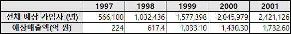 당시 KT, 나래이동통신, 서울이동통신 등이 3파전 양상을 펼칠 것으로 기대됐던 수도권 CT-2 시장은 97년 56만 6천여 명, 98년 103만 2천여 명, 99년 157만 7천여 명, 2000년 204만 5천여 명을 넘어 2001년에는 242만 1천여 명 규모에 이를 것으로 전망됐다. 전문가들은 이처럼 상당한 규모로 성장할 것으로 예측되던 CT-2의 수도권 시장 규모는 국내 전체 시장에서는 약 절반가량을 차지할 것으로 예상했다.