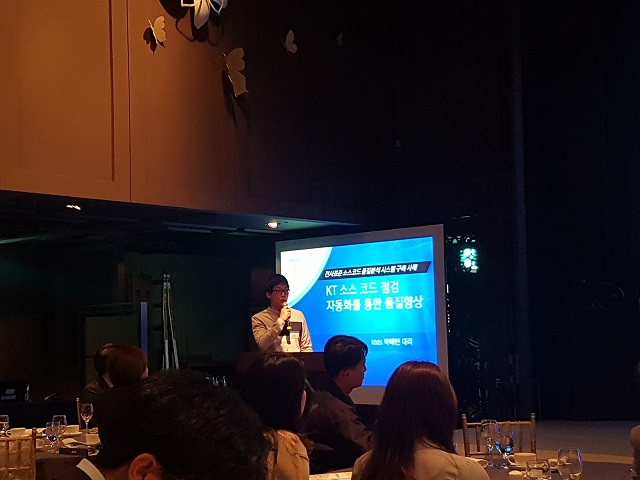 백운기 상무의 발표에 이어서는 KT DS의 박혜민 대리가 전사표준 소스코드 품질분석 시스템 구축사례를 발표, KT에서 지티원의 소스코드 점검·품질관리 솔루션 ‘코드프리즘(CodePrism)’을 도입해 소스코드 점검을 자동화함으로써 품질을 향상시킨 노하우를 공유했다.