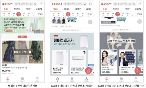 다른 이커머스와 다르게 모바일 홈쇼핑 포털 앱 ‘홈쇼핑모아’에서는 특성상 ‘시간’이라는 정보가 존재하며, 편성표 등의 서비스를 통해 홈쇼핑사의 편성 정보를 제공하고 있다. 홈쇼핑모아는 현재 편성표가 서비스의 홈 역할을 하고 있으며, 방송에 예정된 상품의 편성표를 탐색하는 고객도 굉장히 많다.