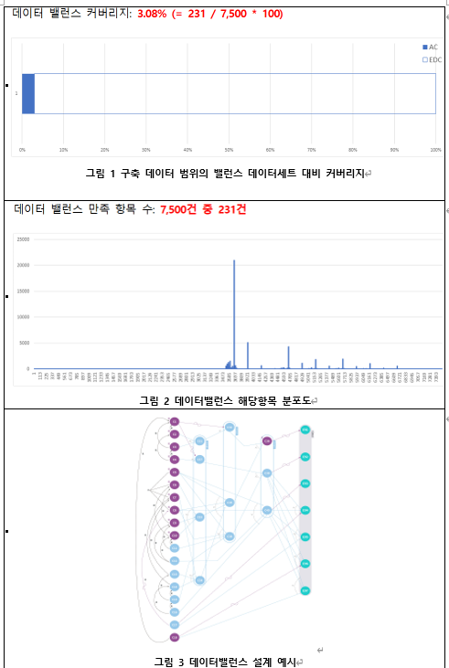 모 기관에서 인공지능의 시각적 판단을 위해 모아 놓은 5만 장의 화상 데이터를 데이터 밸런스 기술로 분석한 결과, 7천 장의 다양성(CAD = Coverage of Evaluation Applied Dataset)이 필요했음에도 유의미한 데이터는 231장(3.08%)일 뿐 나머지는 모두 중복 데이터의 나열이었다. 다시 말하면 7천장이면 충분한 데이터를 굳이 5만장이나 모았음에도, 231장의 역할 밖에 하지 못했다는 뜻이다. 이런 상황인데 데이터 수집을 책임지는 주체들은, 수집되고 있는 데이터가 얼마나 심각한 상태인지 전혀 인식하지 못하는 경우가 많았다.