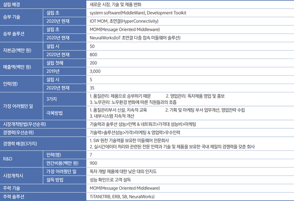 가장 보람 있었던 3가지는 ▲설립 5년 후 누적매출 100억 원 달성했을 때, ▲첫 시제품인 TiTAN 솔루션을 증권사 실시간 온라인 시스템에 적용 가동됐을 때(*기술적 자부심과 성취감 느낌), ▲기술보증기금의 자금을 융자받아 제품을 개발하고, 영업을 통해 융자금을 모두 완납했을 때(* 제품과 고객, 그리고 희망의 미래를 보았을 때)였다고 응답했다.