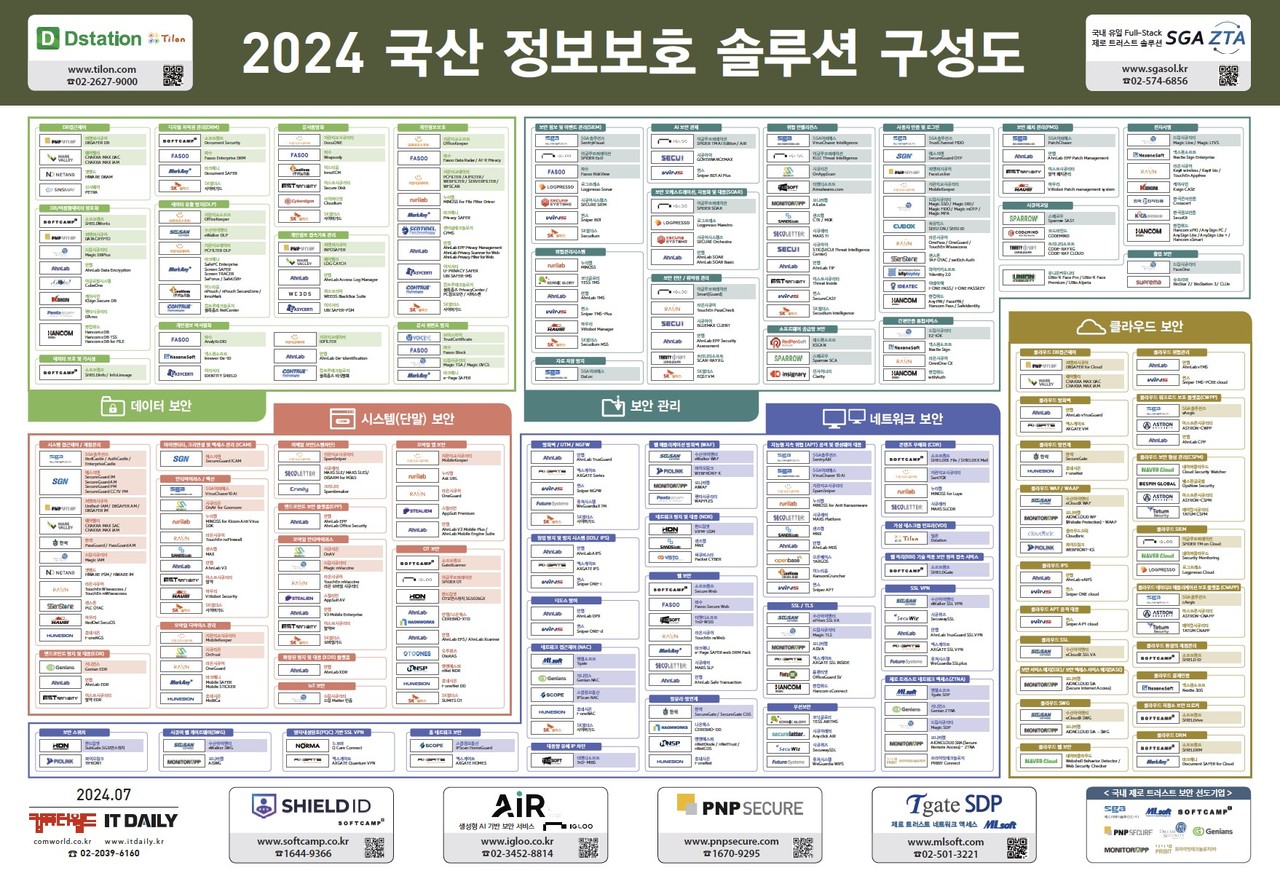 [컴퓨터월드] 컴퓨터월드 2024년 7월호 특별부록으로 제공되는 ‘2024 국산 정보보호 솔루션 구성도’ 브로마이드입니다.