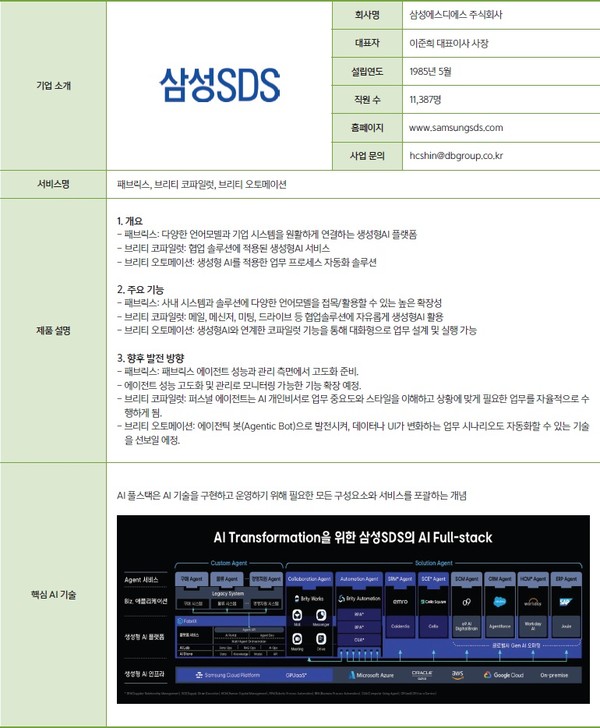 AI 풀스택 전략의 기반에는 △생성형 AI 플랫폼 ‘패브릭스(FabriX)’ △AI 협업 서비스 ‘브리티 코파일럿(Brity Copilot)’ △업무 자동화 솔루션 ‘브리티 오토메이션(Brity Automation)’이 자리하고 있다. 오랜 기간 축적된 컨설팅 역량과 다양한 산업 구축 경험, MSP 운영 노하우가 더해져, 삼성SDS는 AI 트랜스포메이션 전 과정을 지원하는 통합형 파트너로 자리 잡고 있다.
