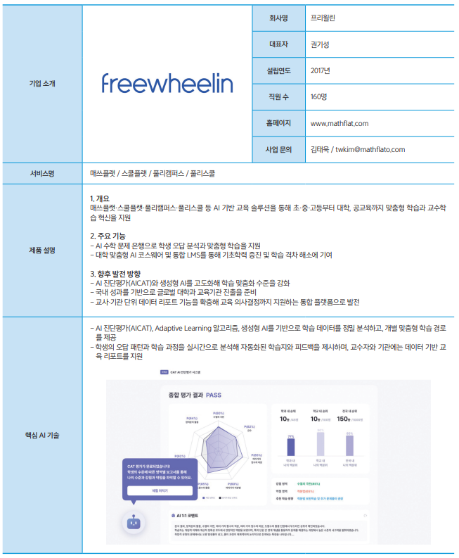 특히 대학생 기초 학력 진단 평가 참여 학생 수가 17만 명 이상을 기록하며 교육 현장의 중요한 도구로 자리매김하고 있음을 보여준다. 프리윌린은 이러한 성과와 기술력을 바탕으로 공교육 및 사교육 현장의 AI 기반 디지털 전환을 선도하며 교육의 본질적인 혁신을 지속적으로 이끌어갈 계획이다.
